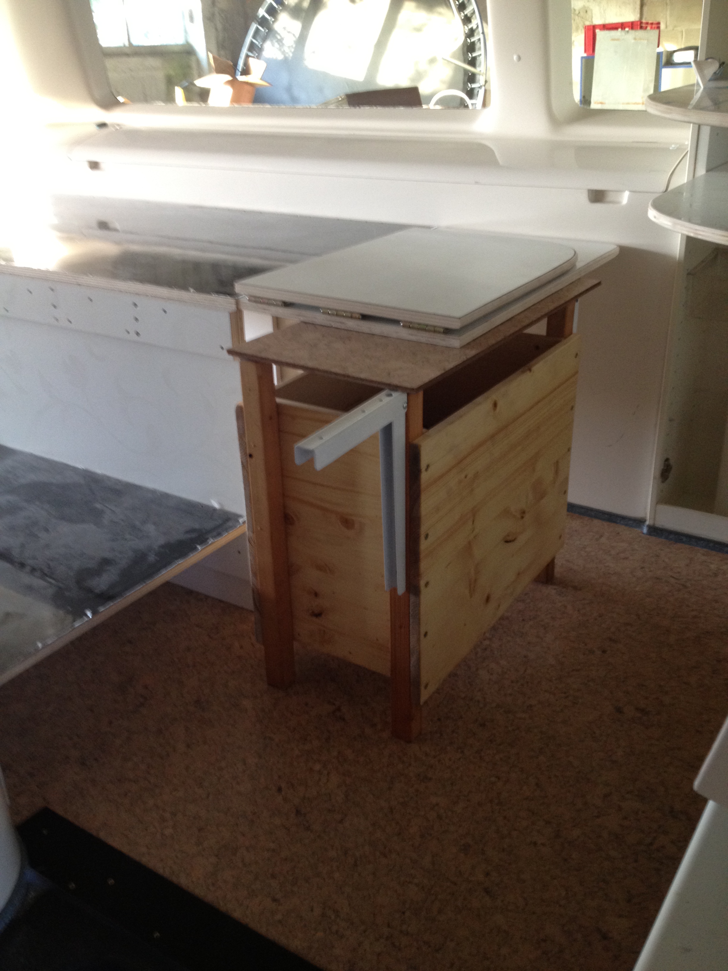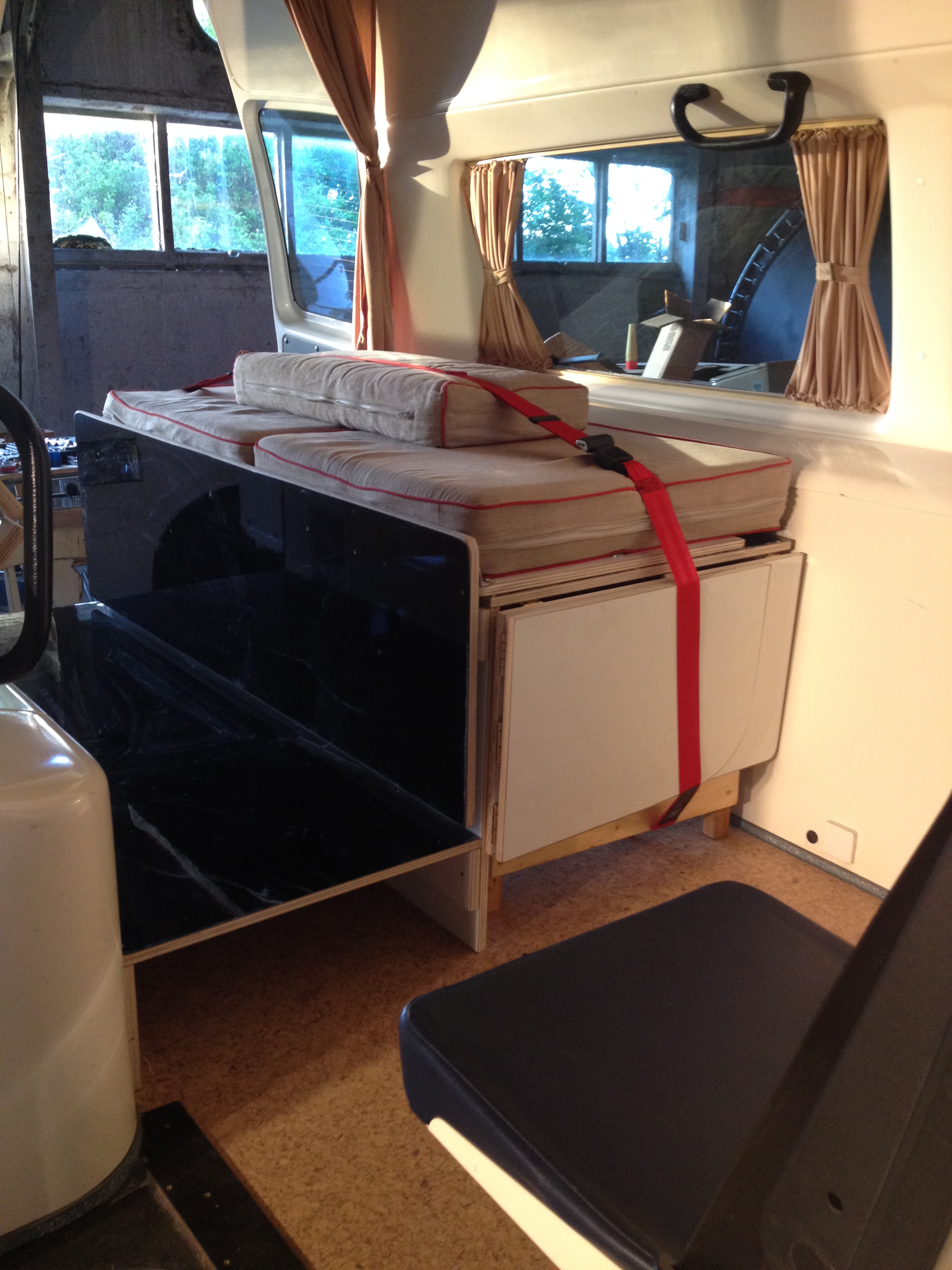 In wenigen Handgriffen ist der Schlafplatz zu einem gemütlichen Sitzplatz für drei Personen mit Klapptisch umgebaut.