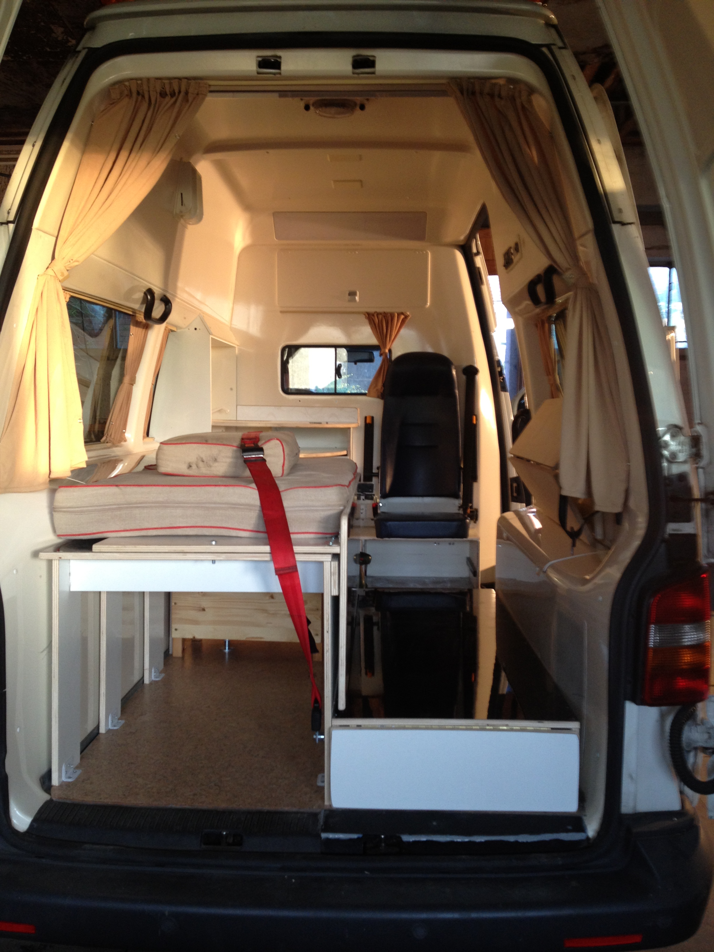 Unser Campingvan „Paderborn“ ist der Klassiker unter den Vans, die zum Camper ausgebaut werden. Durch die hohe Decke und genügend Stauraum bietet er genug Schlafplätze für 2 Erwachsene und einem Kind. Mit dem eingebautem Stuhl und Klapptisch, kann man auch die Zeit im Innenraum verbringen, ohne sich beengt zu fühlen. So wird der Urlaub nicht ins Wasser fallen.