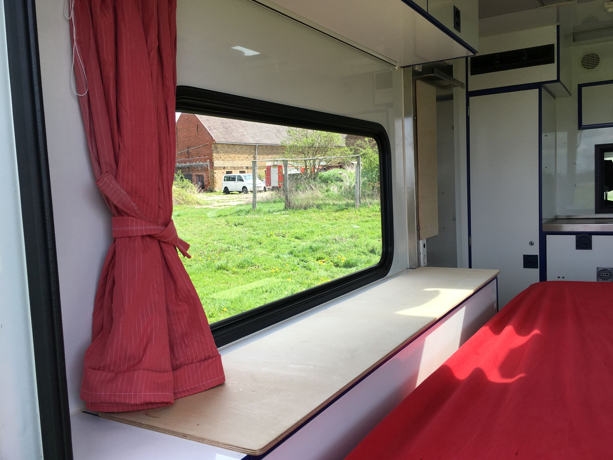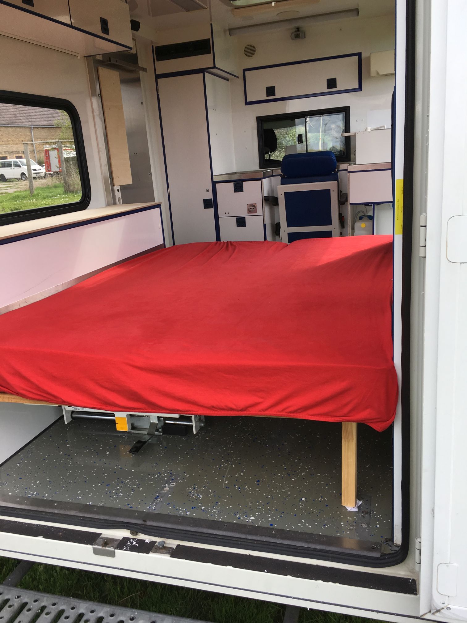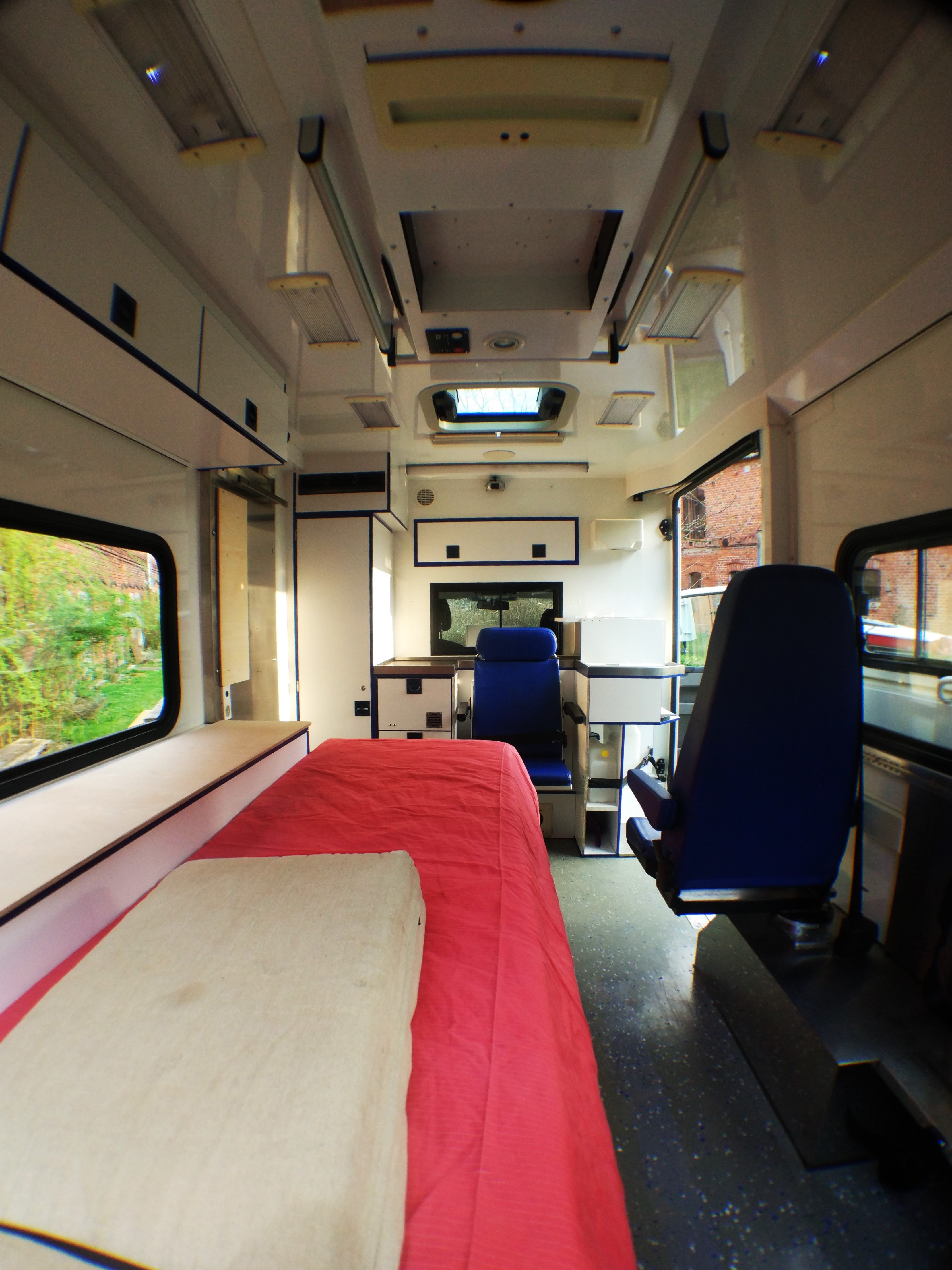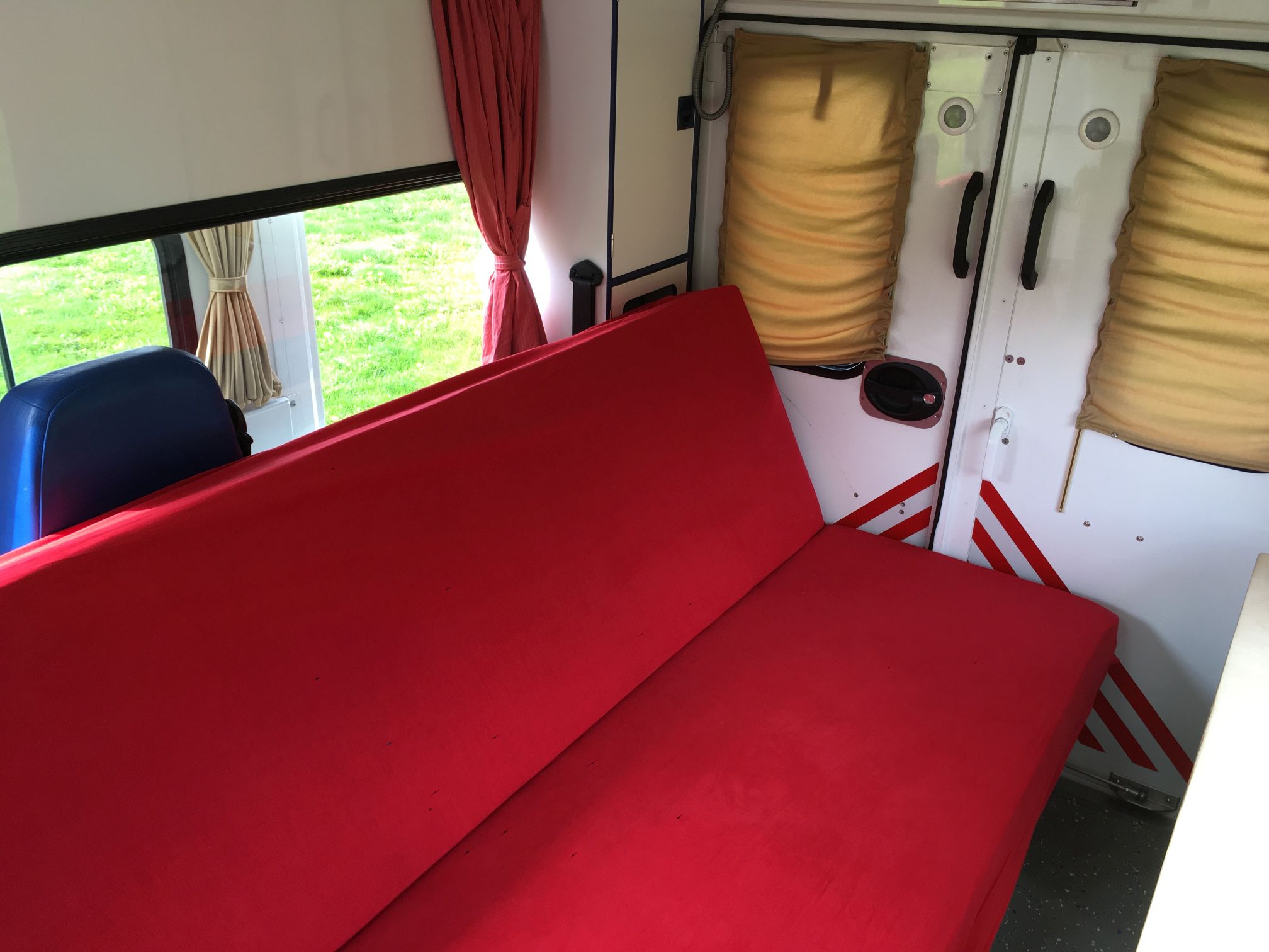 Durch das Bett, welches Ihr im Handumdrehen zu einem Sofa umbauen könnt und dem zwei Sitzen, könnt Ihr es Euch auch jederzeit im Kastenaufbau gemütlich machen. So könnt Ihr nach einem langen Tag in Ruhe mit dem Küchenmodul etwas kochen und dann entspannt auf der Couch die Beine ausstrecken.