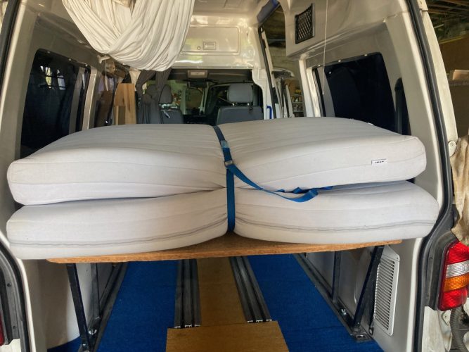 Dieser VW T5 Bus „Wuppertal“ verwandelt sich in wenigen Schritten von einem 7-Sitzer in einen 5-Sitzer Campingvan mit 3 Schlafmöglichkeiten.